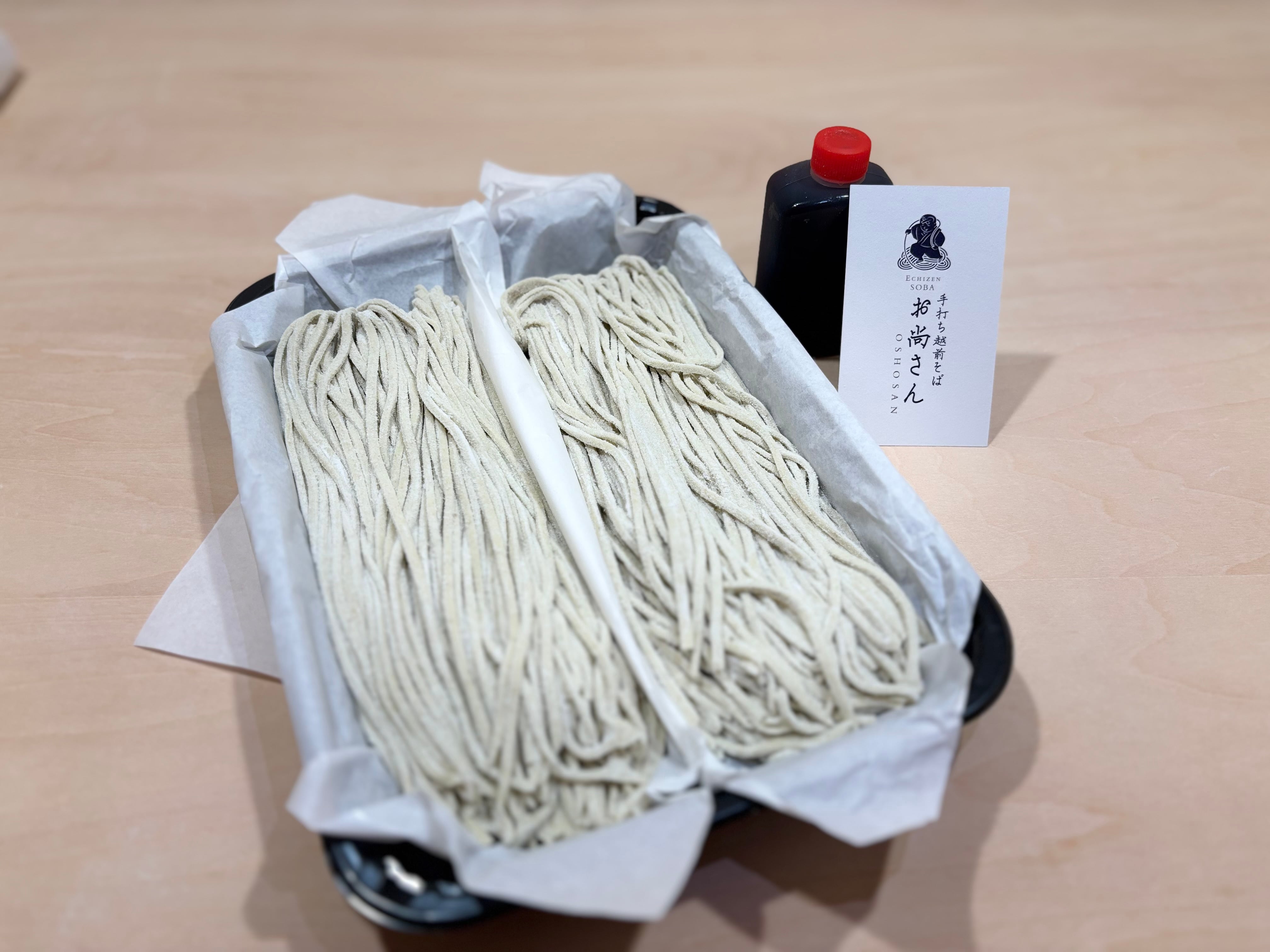 越前そば 500g (専用麺つゆ付き)は、福井県原種の特選玄そばを贅沢に使用しており、強い蕎麦の香りが特徴です。専用の麺つゆが付属していて、自宅で簡単に本格的なそばの味わいを楽しむことができます。